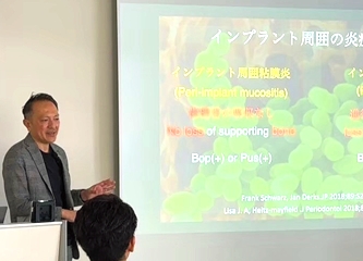 インプラントコース講師歯科インプラント治療の分野で「先生の先生」として、専門技術を指導しています。インプラント技術はもちろん、インプラントに必要な骨の厚みや高さが足りない症例に対し、歯槽骨を再生させる「骨誘導再生法(GBR)」を専門に教えています。この技術を広めるため、全国で精力的に講師活動を行っています。