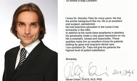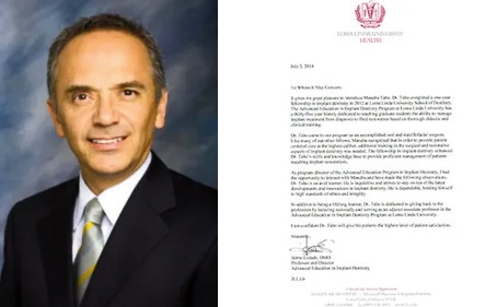 私は、インプラント科プログラムの責任者の立場から、多保先生をずっと見てきました。彼は非常に熱心な学生でインプラント学の最新のトップレベル技術や知識を維持するために、研究や努力を常に怠りませんでした。また非常に頼りになり、適切な倫理と品格を持っている歯科医師です。