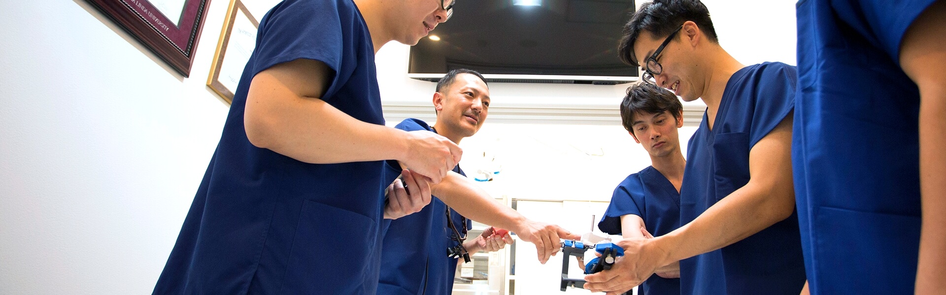歯科医師免許取得後、日本歯科大学附属病院、町田市民病院口腔外科に勤務し、診療や勉強に励みました。日本歯周病学会専門医、日本口腔外科学会専修医を取得後、日本のインプラント教育が未確立であることに疑問を感じ、インプラント先進国であるアメリカで根拠に基づいた治療を学ぶため、初めてインプラント科を作ったロマリンダ大学院へ留学をし知識と技術の研鑽を行いました。ロマリンダ大学院卒業後も、現在では米国ロマリンダ大学の非常勤臨床助手として年に数回渡米し、大学院生への講義や手術サポートなど教育にも携わっております。