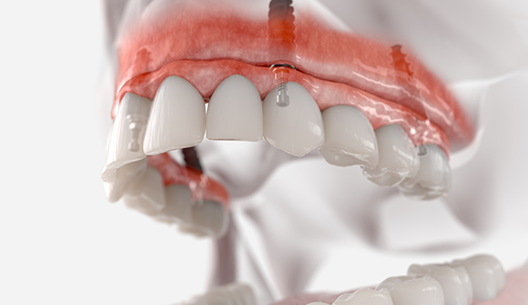 インプラントでは骨移植/骨造成が必要なケースもございますが、骨が少ない状態でもオールオン4を行うことができます。